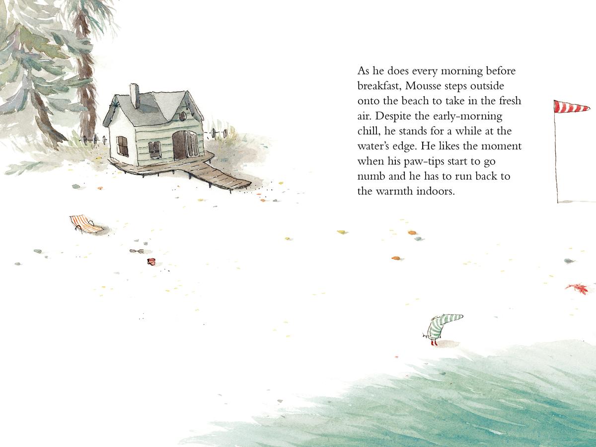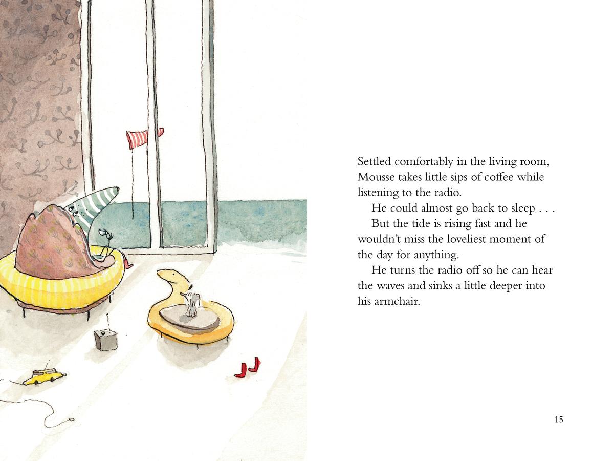 Mousse loves his solitary life by the sea. Every morning, he strolls by the shore, drinks his freshly-brewed coffee, and takes a long, serene bath. But when an uninvited walrus named Bichon appears in his armchair one day, Mousse’s scrupulous routine is ruined. It isn’t long before Bichon has made himself comfortable in just about every part of Mousse’s home: his bed, his dining room, his bathtub . . . What’s Mousse to do?