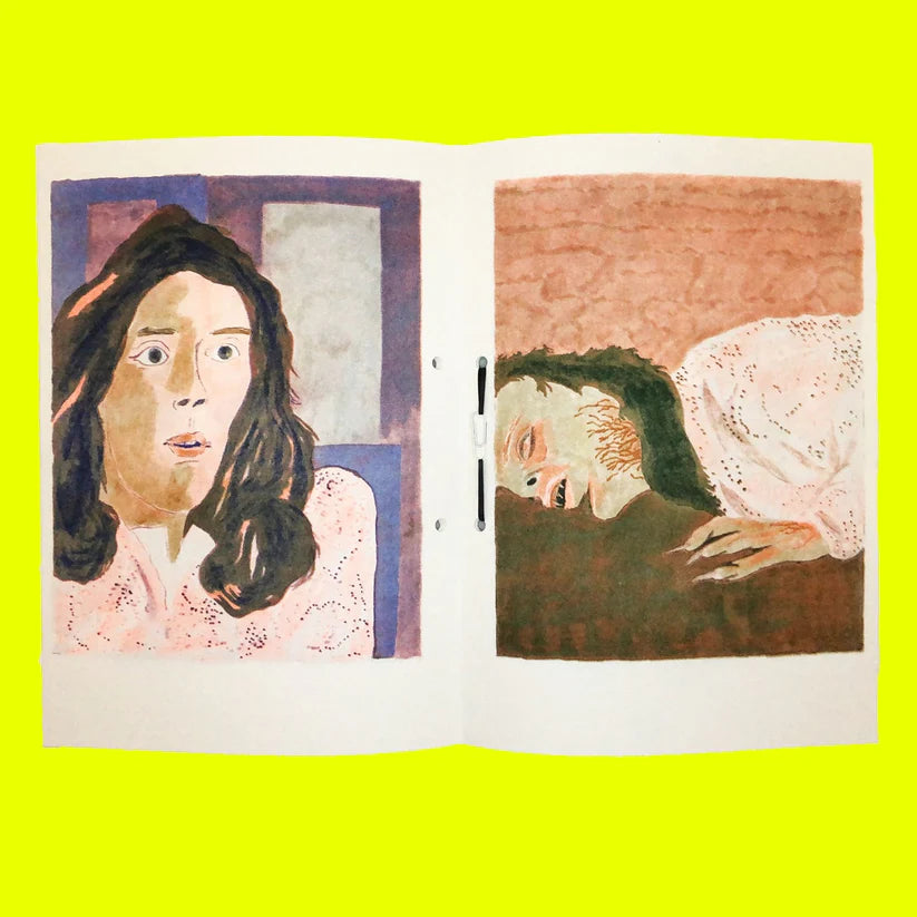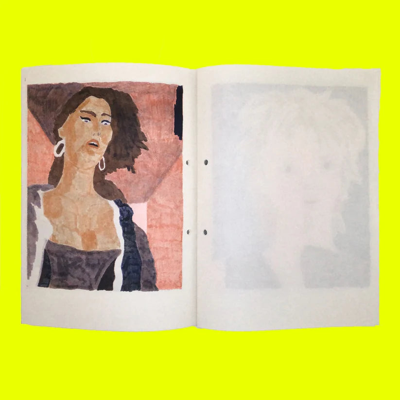 Published and printed by Colorama in April 2019, all artwork by Lucie Lučanská, A4, 40 pages, risoprint in medium blue, fluo orange, hunter green and flat gold, ribbon-binding with paper clip. First edition of 450 copies.