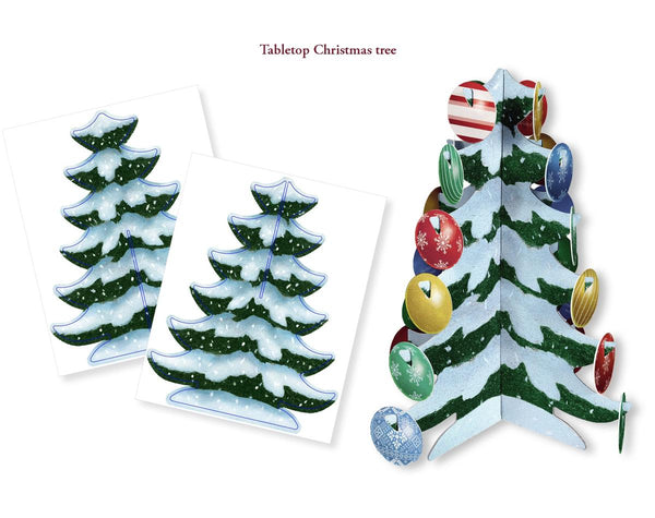 • Sturdy, easy-to-construct 3-D Christmas tree with notches to hang ornaments