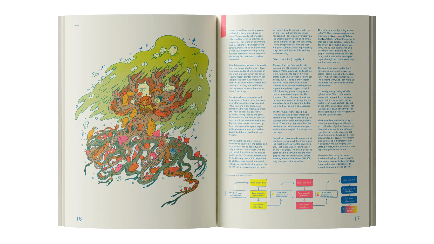This is 100% the book for anyone interested in Risograph artwork and especially for any fans of Natalie's artwork, but also this is a book for people looking for a way to feel inspired by cool things.
