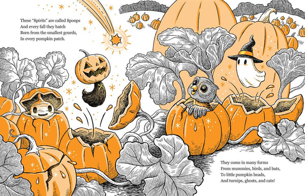 Presented in rhyming verse that recalls Dr. Seuss and “’Twas the Night Before Christmas,” along with nostalgic illustrations in black, white, and orange, Spoops is an instantly timeless classic that places Halloween right alongside other beloved holidays. It’s a clever trick and a lovable treat that the whole family will treasure.
