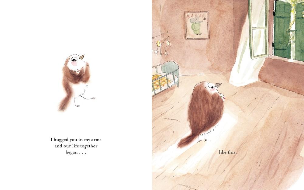 A mother bird recalls the arrival of her new baby and the months that follow. She is an artist, and sits before a blank sketchbook, brushes at the ready. What was it like the first time she held her baby in her arms? What did it feel like when they were apart? And when they flew off together in her dreams? It was like this . . . and like this . . . and like this . . . With warmth and tenderness, across a minimal palette of watercolor and ink, Claire Lebourg depicts the joys, worries, and wonders of the early days of parenthood.