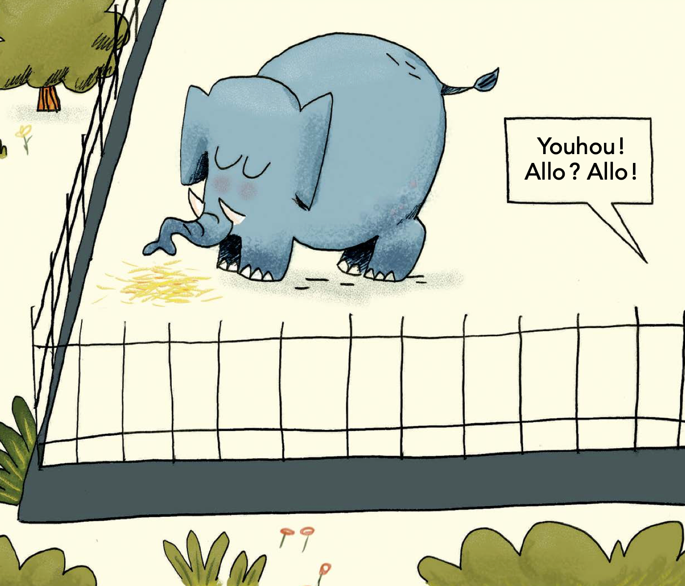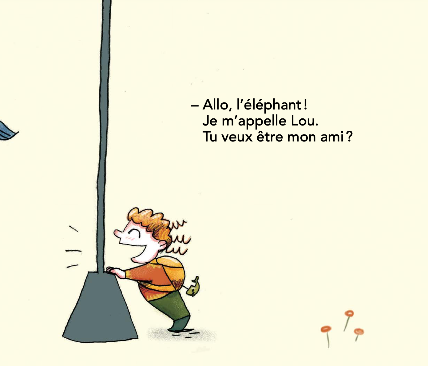 Au zoo, Lou demande à sa maman : « Je peux inviter un ami à la maison pour goûter tes biscuits à la pistache? » Sa maman, en pleine conversation sur son cellulaire, accepte sans voir que l’ami est... un éléphant! Qu’arrivera-t-il lorsque cet ami pesant plusieurs tonnes les accompagnera en pleine rue, prendra le métro et tentera de sauter sur le trampoline? Avec Mon nouvel ami, Sylvain Bouton concocte une histoire où une amitié plutôt invraisemblable semble finalement des plus plausibles! On s’amuse au fil des pages à explorer différents lieux : le zoo, la cage, la rue, le métro et la cour de la maison. On s’amuse aussi à observer le singe fugueur qui s’est faufilé incognito dans le sac à dos de l’enfant. Bref, un savant mélange d’absurde et de vie quotidienne.